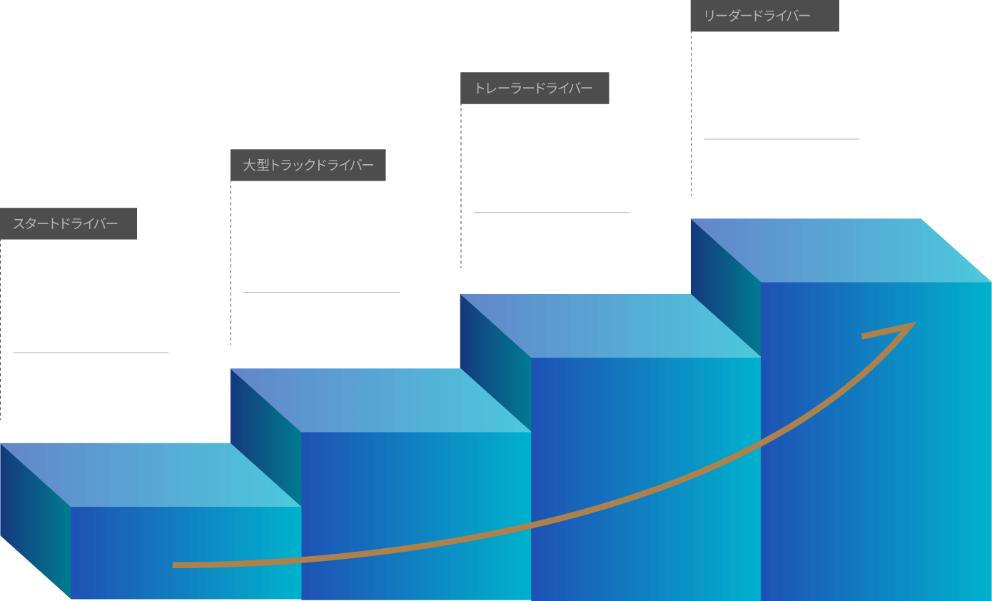 大型ドライバーとしての経験を積んだのち、トレーラードライバーへステップアップです。大型トラックとトレーラーでは、現運転方法や配送現場が全く異なりますので、改めて同乗期間を設けております。(1か月前後)今一度、初心に戻った気持ちで臨みましょう。