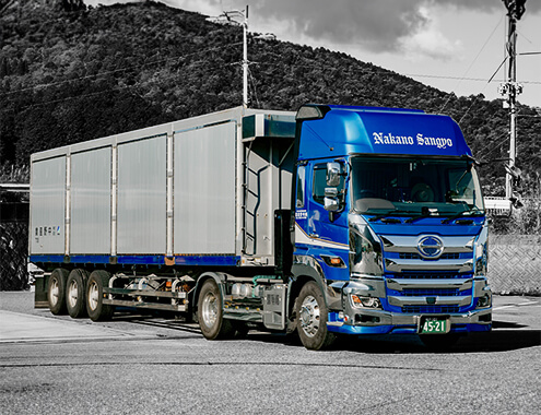 僕の1日は朝3時に始まります。点呼・アルコールチェック・体調チェックを済ませ、車両点検をして出発。積み込み先で木材チップを積んで、工場などの荷降ろし先に届ける。この流れを1日2〜3件こなして、午後2時頃には仕事が終わります。